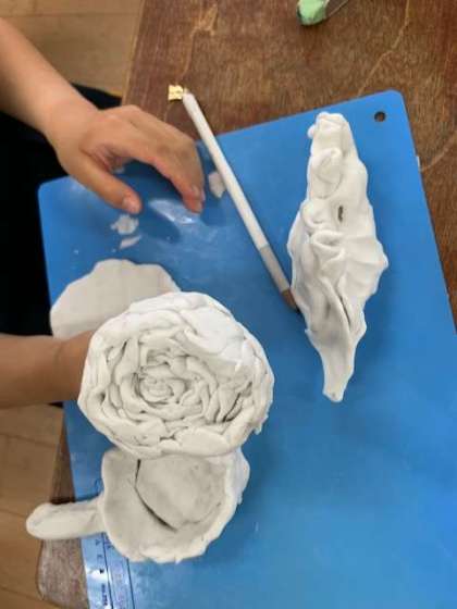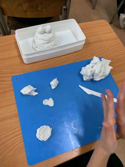 「粘土をにぎにぎして」といろいろなものを作っていきます。