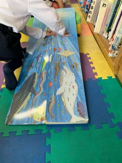 学校の図書室にはこんなにも大きな、大型絵本があります。