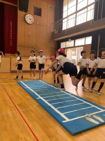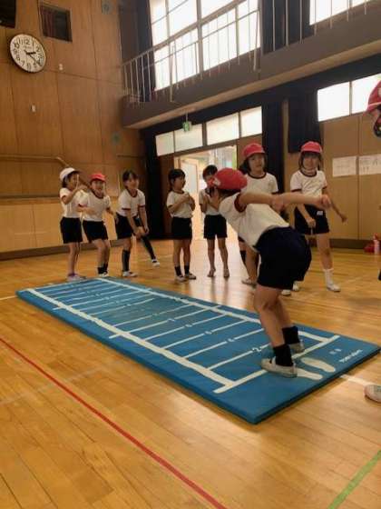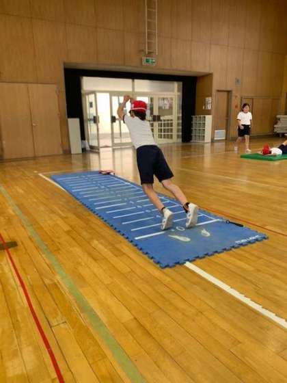スポーツテスト、立ち幅跳びに取り組んでいます。