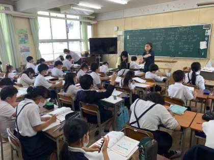 5年生の算数科の時間に、教室を訪れるとなんと教職員が3人も指導にあたってくれていました。