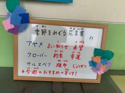 今週のおすすめ本を紹介する新たな掲示物ができました。この掲示物を見て、図書室の扉を開けて行く子が増えることを期待しています。