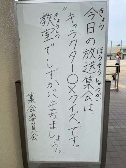 今朝は集会委員会の児童による「キャラクター○??クイズ」がありました。