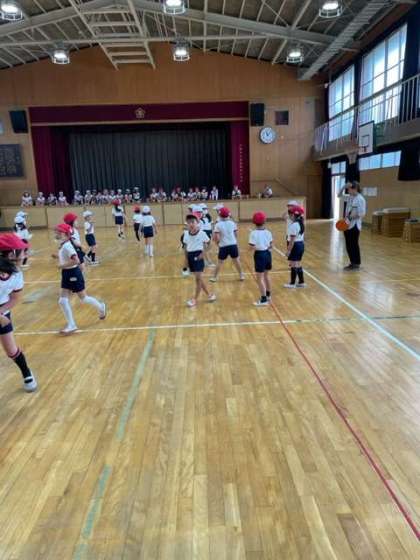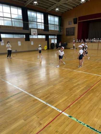 昨日の雨で運動場が使えなかったので、体育館でドッジビーをして身体を動かしました。