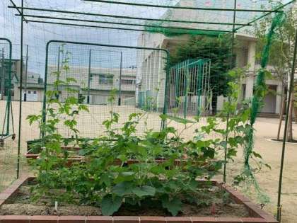 少し見ない間に、ヘチマも育っています。たくさんの花と実をつけてくれることを期待しています。