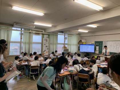 多くの教職員が参観し、放課後に授業の良かった点や課題点について話し合います。