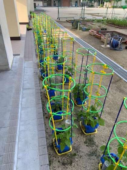 順調に成長していることもあり、支柱つけました。そのうちに、花が顔を見せてくれることを楽しみにしています。