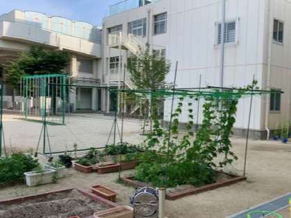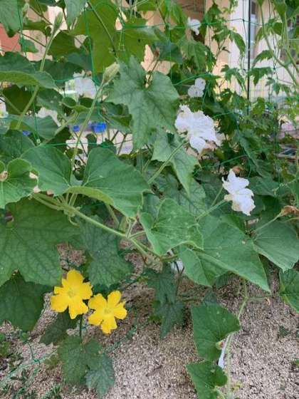 学習園で育てているひょうたんを見ると、花が咲き、なんとなく…ひょうたんの形も見つけました。