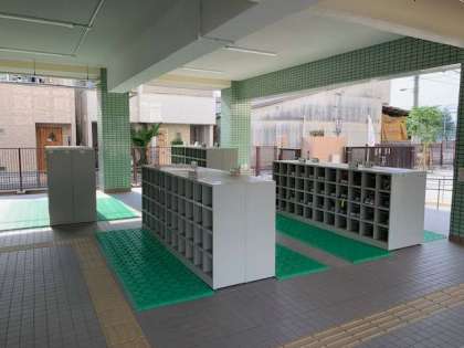一年生の靴箱の位置がどうしても強い雨に降られると雨水がかかってしまいます。