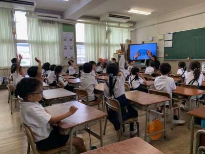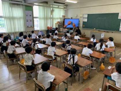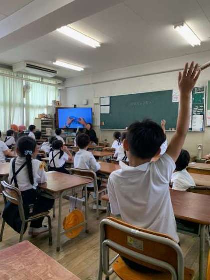 子どもたちは、興味深々で手を挙げて答えます。
