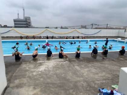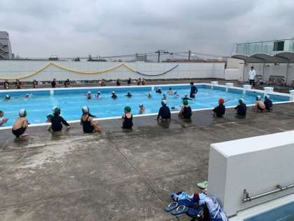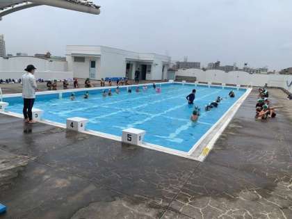 今日は、少し気温が低めで、寒いと感じる子どもたちもたくさんいましたが、子どもたちは水の中に入ると楽しそうです。