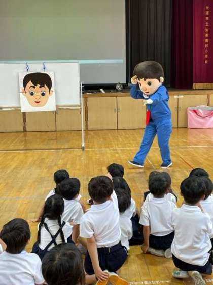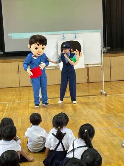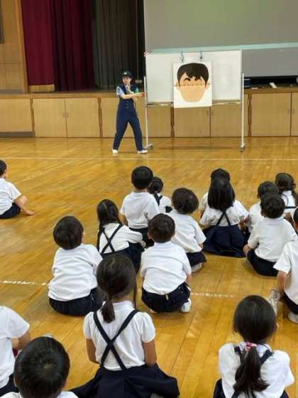 今日は平野警察の方が来られて、1年生向けの防犯教室が行われました。