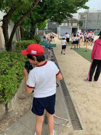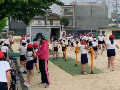 ジメジメ蒸し暑いですが、水分補給タイムを取り、熱中症に気をつけて体育の授業を進めています。