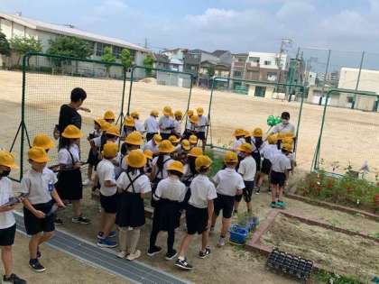 植えているサツマイモの観察にタブレットを持って撮影します。いい写真が撮れるでしょうか?