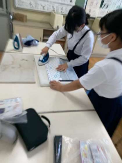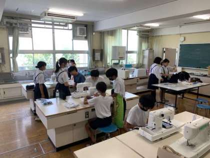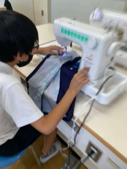 エプロン作りです。友だちと協力しながら、どんどん完成していきます。