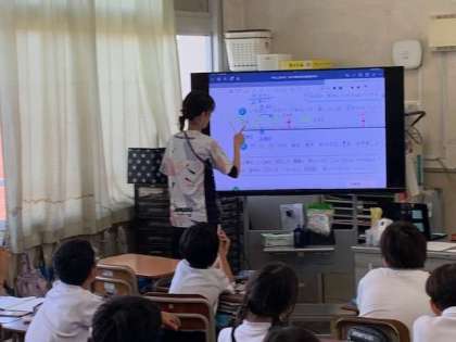 大型液晶モニターで、数直線の問題も見やすくなります。先生の持っているタブレット端末で直接書き込み、拡大、自由自在です。
