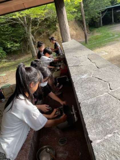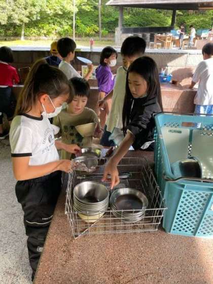 お鍋をゴシゴシ磨いて、後片付けもしっかりと頑張ります。