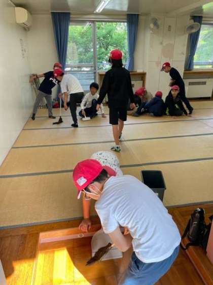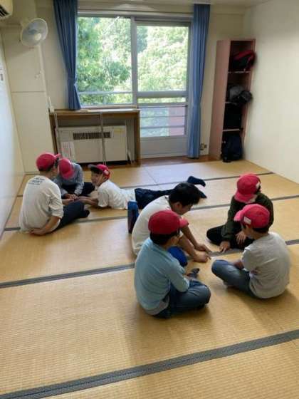 お部屋の掃除がきれいにできた部屋の児童がくつろいでいます。