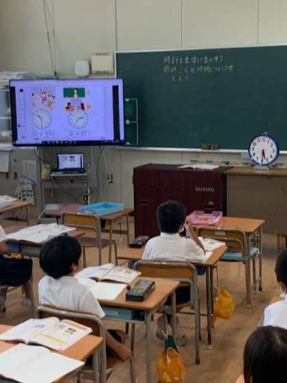 時間と時刻、どうちがうのだろうか??と担任の先生からの質問に対して、考えています。素朴な疑問ですが、子どもたちは真剣に向き合います。