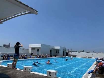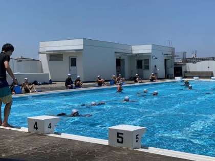 今日は、とってもいい天気です。暑いくらいです。6年生は、平泳ぎの練習を熱心に取り組んでいます。