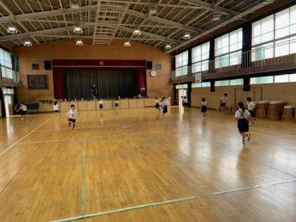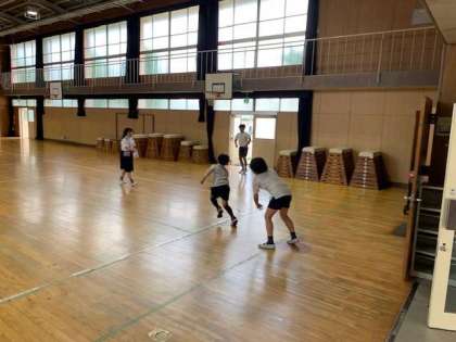 この学級は、ケイドロを、体育館で水分補給タイムをとりながら進めています。