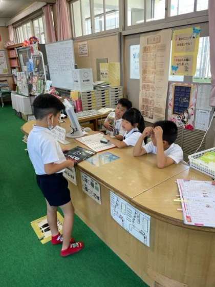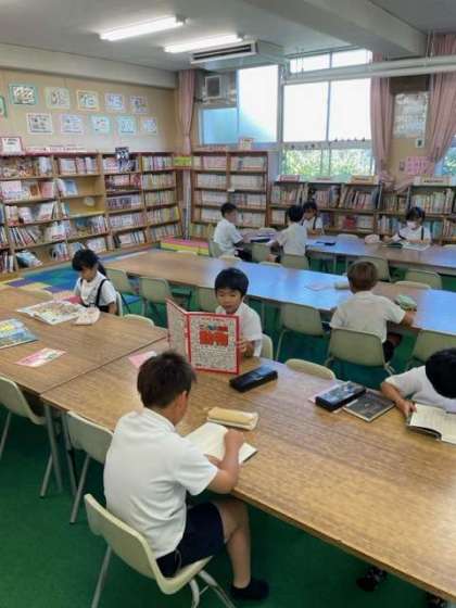 図書館で過ごす時間を、子どもたちはとても楽しみにしています。担任の先生のお話では、「怪談」ものが2年生に人気があるようです。