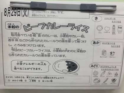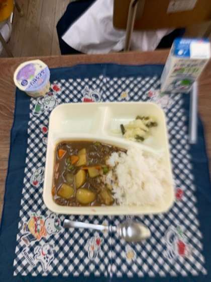 今日の給食は大多数の子どもたちが大好きな「ビーフカレーライス」です。