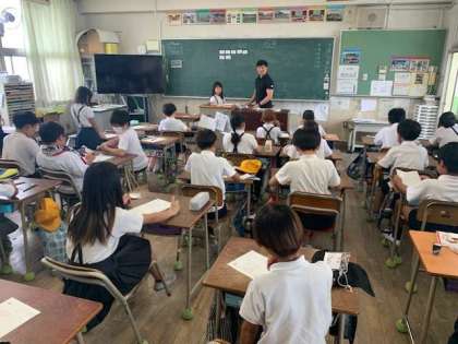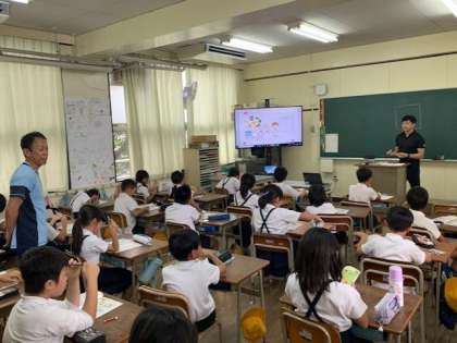 今日は3年生と4年生と6年生の外国語の学習にC-NETが関わってくれます。