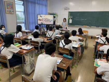 武士の政治について、学んでいました。大型液晶画面を使い、動画と画像で時代背景を押さえて行きます。