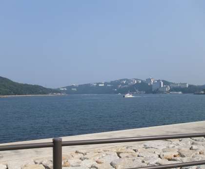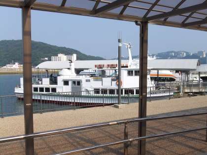 10時から、船で鳥羽湾めぐりをします。左の写真は出発地の佐田浜港、右の写真は鳥羽湾のようすです。下船後は、鳥羽水族館を見学します。