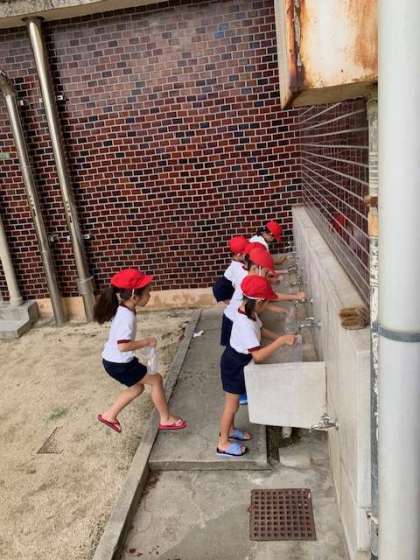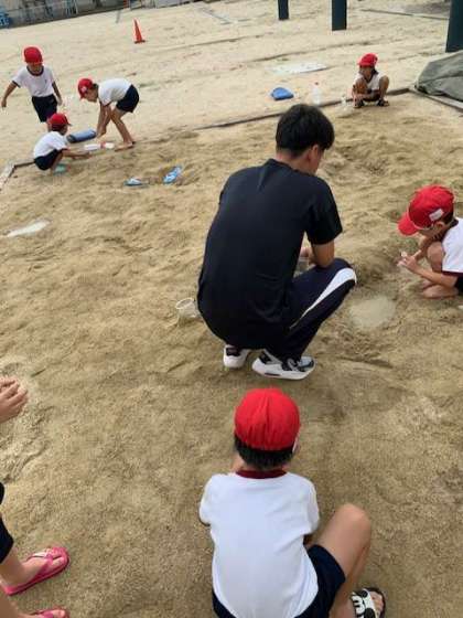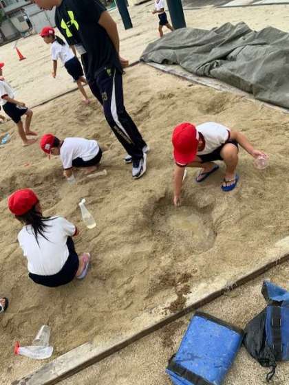先週できなかった学級が、砂場で「泥遊び」を行っていました。