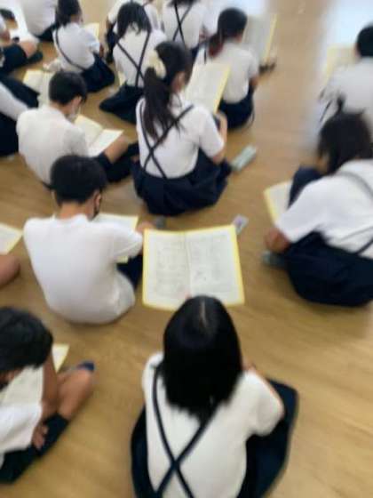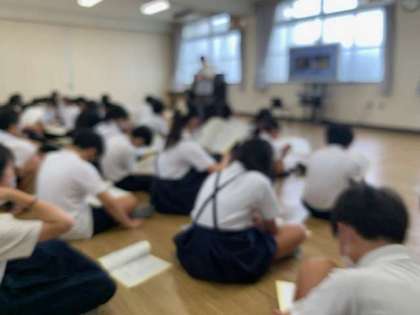 4時間目に学年で、再来週に控えた修学旅行の説明会を行いました。みんなで楽しく過ごすための確認です。
