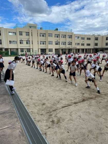 3年生と4年生の混合チームでドッジボールの交流試合をしました。途中で雨が降ってきたため、1試合のみとなりましたが、子ども達の歓声が運動場に響きわたりました。