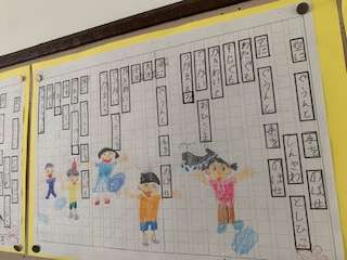 詩を写して、その文章から感じた絵を描いています。想像力を育てる学習です。