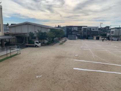 砂埃が舞わないように、ニガリを業者の方に依頼して撒いてもらっています。
