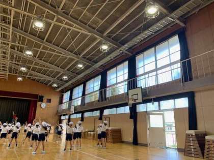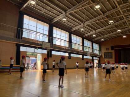 窓を全開にして、換気をしながら一年生は、運動会の練習に励んでいます。