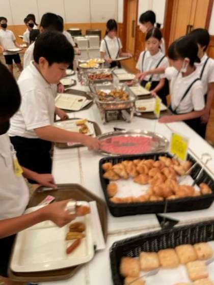 修学旅行の2日目が始まりました。みんな元気に過ごしています。朝ごはんは和食・洋食どちらでも選べます。