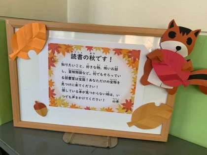 学校図書館司書の方からのメッセージが、図書室前に飾られています。