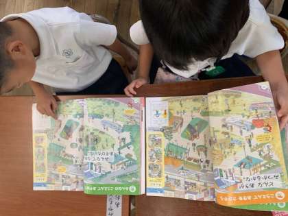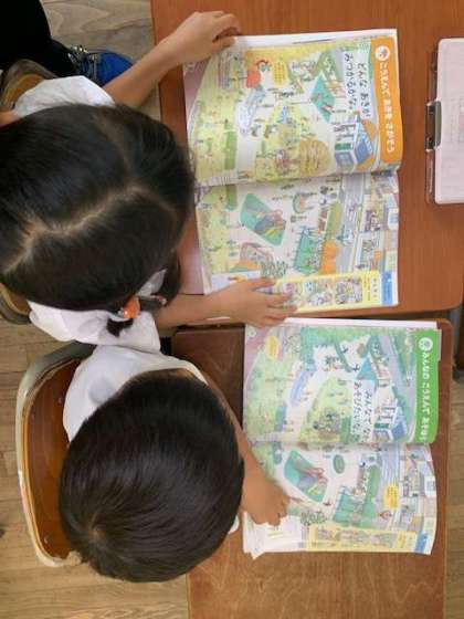 「あき」と「なつ」のちがいを見比べています。どこがどう違うでしょうか??グループの力を合わせて見つけていきます。