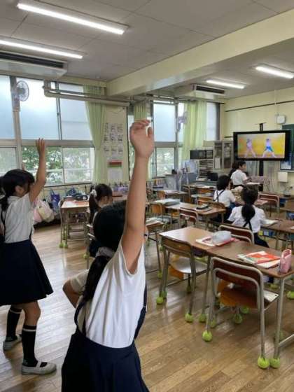 3年生の教室の前を通ると、軽快な音楽が聞こえてきました。どうやら、休み時間に運動会のダンスを覚えていたようです。自主的に楽しみながら取り組んでいる姿がいいなと思いました。