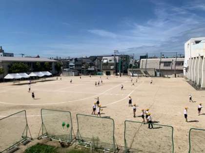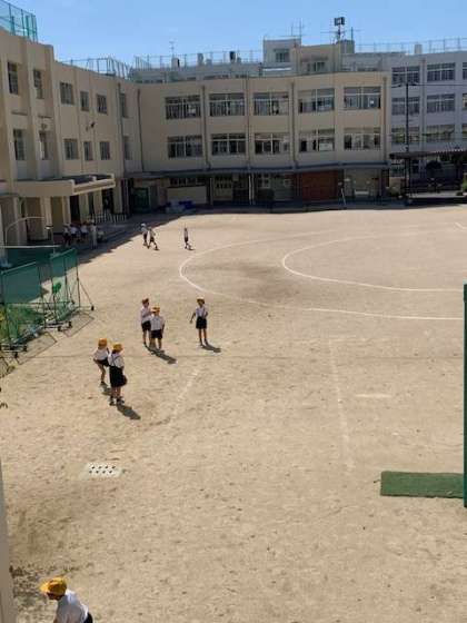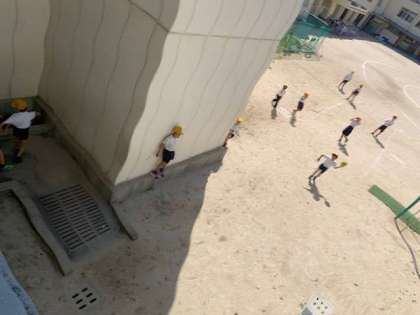 子どもたちは、どんな場所でも工夫して遊びます。今日はとってもいい天気です。