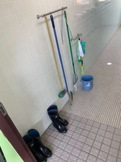掃除用具が、きれいに片付いていることで、掃除も落ち着いてできていることがわかります。