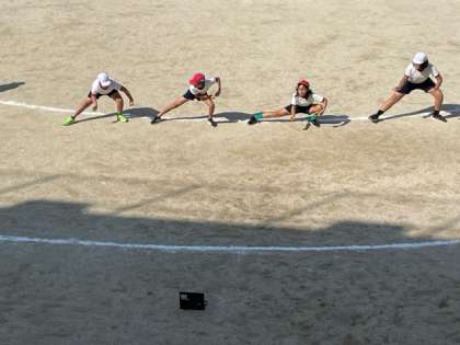 自分たちの動きを端末で撮影して、グループでチェックしながら振り返っていました。