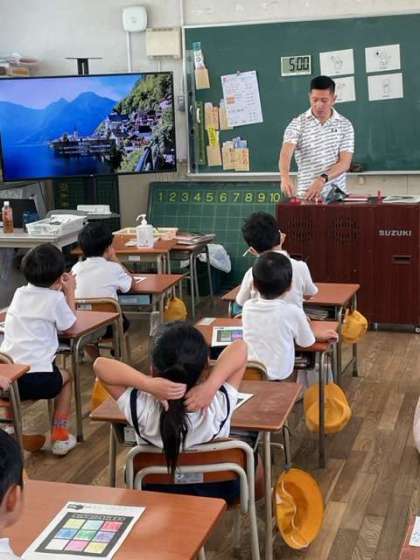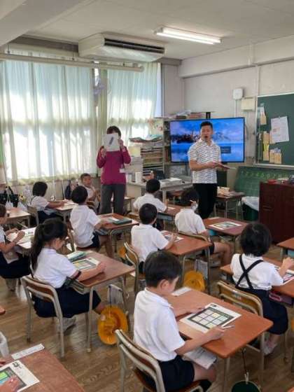 C-NETの先生と一緒にビンゴゲームを楽しみました。ルールは難しくないので、英語が自然と耳に入ってくるようです。