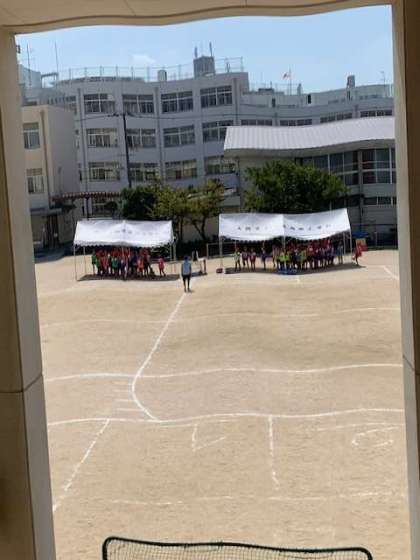 子どもたちの熱中症対策のために、テントの下でできること、体育館でできることはするようにしています。