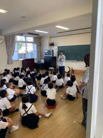韓国・朝鮮の楽器について学んでいます。それぞれの楽器の意味について、ソンセンニムからお話を聞きます。