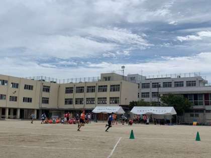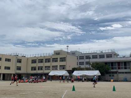 運動会の走競技であるリレーの練習に取り組んでいます。個人の力とチームの力のどちらも試される競技です。