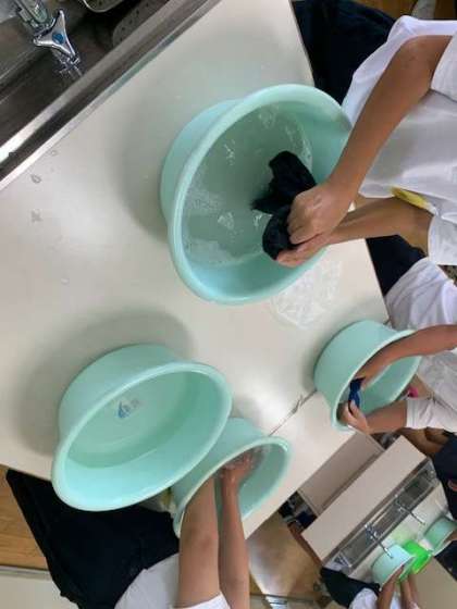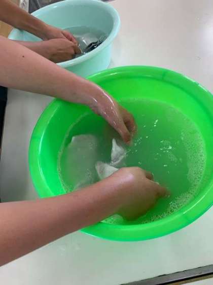 こするたびに水はどんどん濁っていきます。洗えている証です。