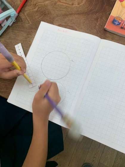 「コンパスの方が描きやすい」と子どもたちは素直な感想をもらします。