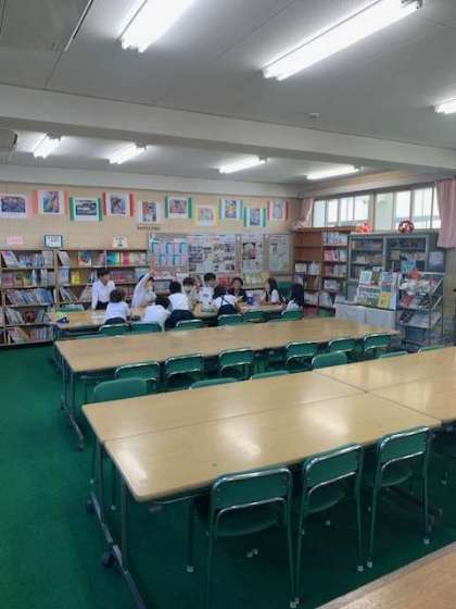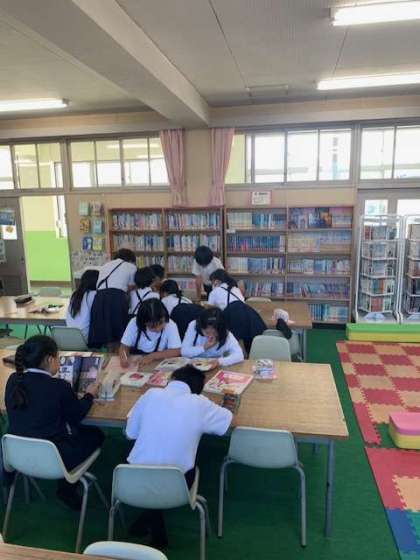 図書室では、静かに本を読みます。4年生にもなると、自発的に行動することができ、落ち着いて読書の時間を過ごしています。