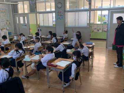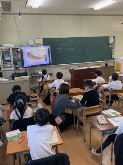 担任の先生がデジタル教科書を使って、図や絵をわかりやすく説明しています。